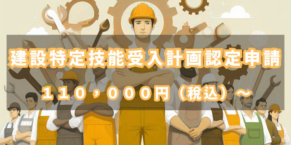 | ☑建設特定技能受入計画認定申請(新規受入) ☑建設特定技能受入計画認定申請(受入計画変更) | ¥165,000※注1 ¥110,000 |